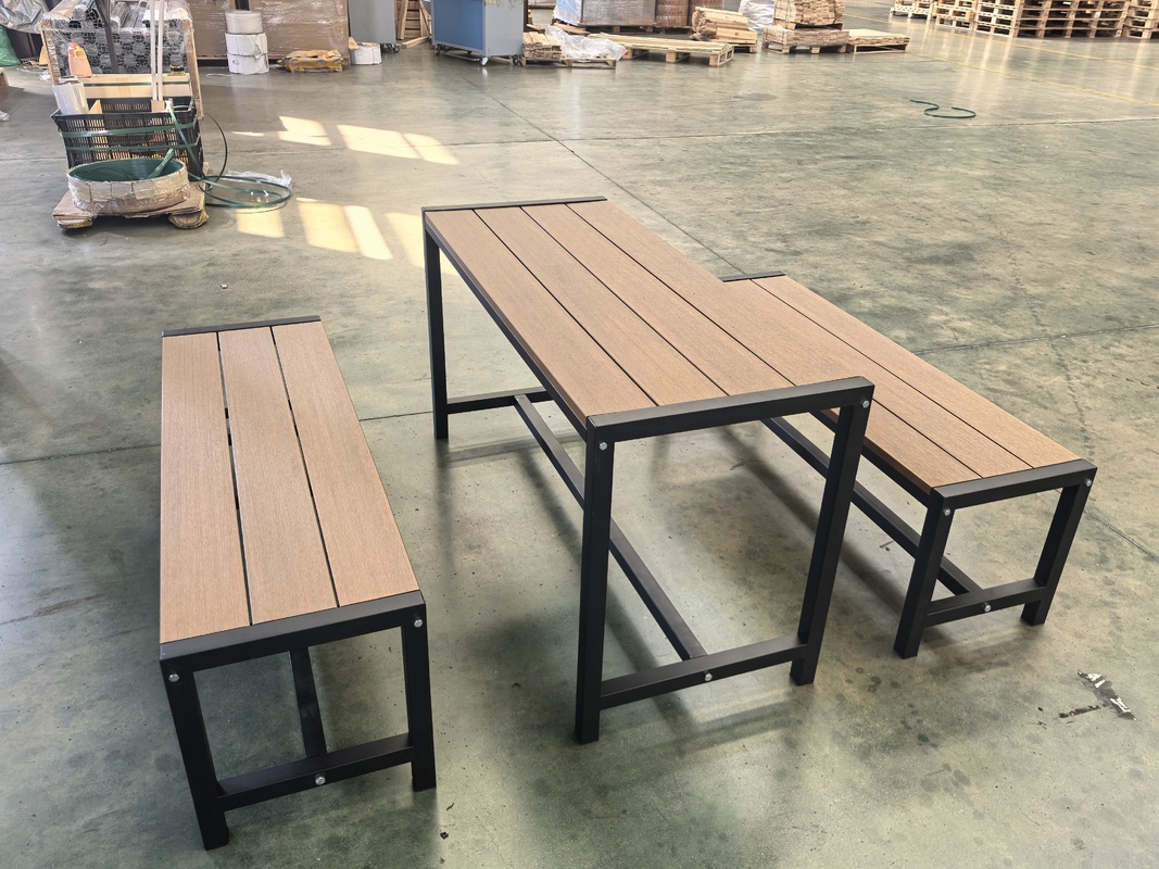 Crafted from high-density Wood Plastic Composite, the tables and chairs offer significantly enhanced load-bearing capacity and resistance to deformation. They will not crack, rot, or mold, maintaining their elegant form under scorching sun, heavy rain, or freezing cold, with a lifespan far exceeding that of ordinary wood or plastic.
